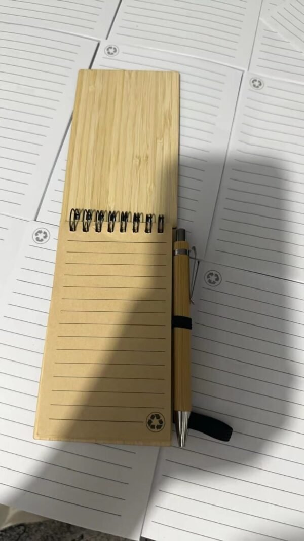 The Mini-Bamboo Wooden Book features (94 Recycled Bamboo Pages) with a stylish stick binding, Coming with free bamboo pen in a dedicated pen holder offering a premium look with an authentic bamboo design. Customize with photo, name, or logo laser engraving. Ideal as an eco-friendly corporate gift option, please note that bulk orders require a minimum 5-day lead time for dispatch from our warehouse