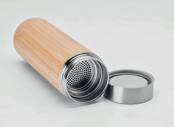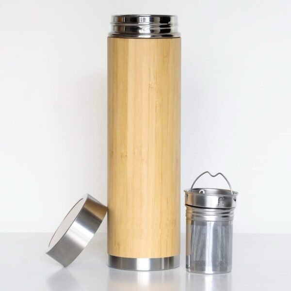 Additional stainless steel tea infuser is included with this wonderful ecofriendly reusable bamboo bottles which makes it multipurpose product.