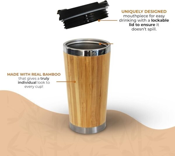 Coffee mug sipper stainless steel made with real bamboo 450ml