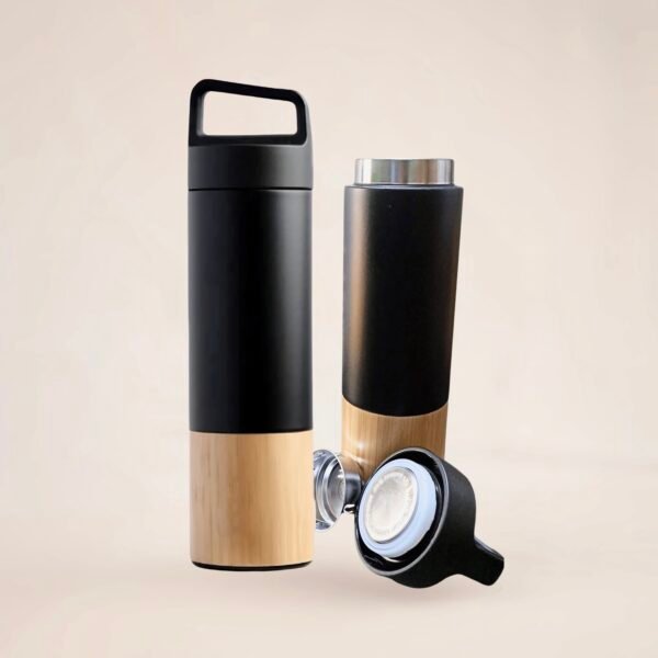 Dual Tone Bamboo Stainless Steel Insulated Flask Bottle